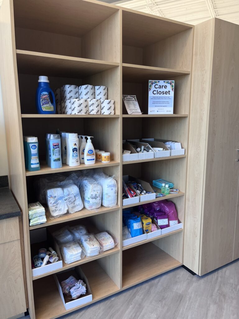 The Care Closet is located in Newton Public Library’s southeast corner, next to the coffee station. It’s a joint project of United Way of Harvey and Marion Counties, Health Ministries Clinic, and the library.